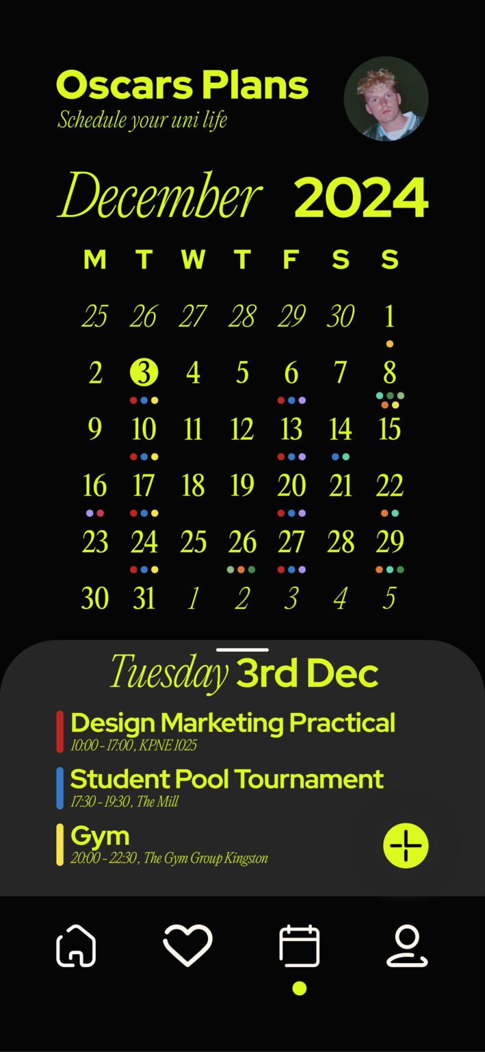 Jack and Oscar where looking to re-invent the wheel on how uni students can stay connected and meet up with friends. Being in Uni themselves they had realised there was a clear issue, despite being surrounded by so many other students, with a abundance of things to do with one another… people where just staying at home in their dorms… best case going out partying on the weekends, and Jack and Oscar wanted that to change. Through using a calendar style app on the students phones, that allowed ‘connecting’ with one another, simple, seamless, and would GIVE out ideas on what to do, whilst keeping everything within a shared calendar, keeping everything in one place and accessible.